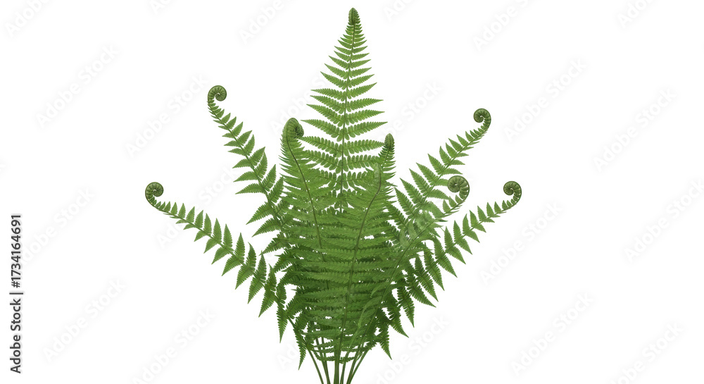 Isolated Green Fern Fronds with Young Spirals Leaves, Plant for Background Design