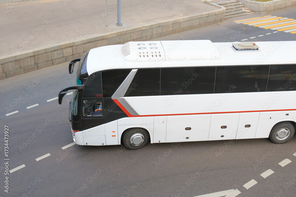 Tourist Bus at the Crossroads of City Streets
