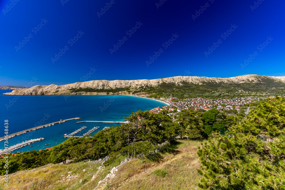 Panoramic view of Baska Bay and marina on Krk Island, Croatia