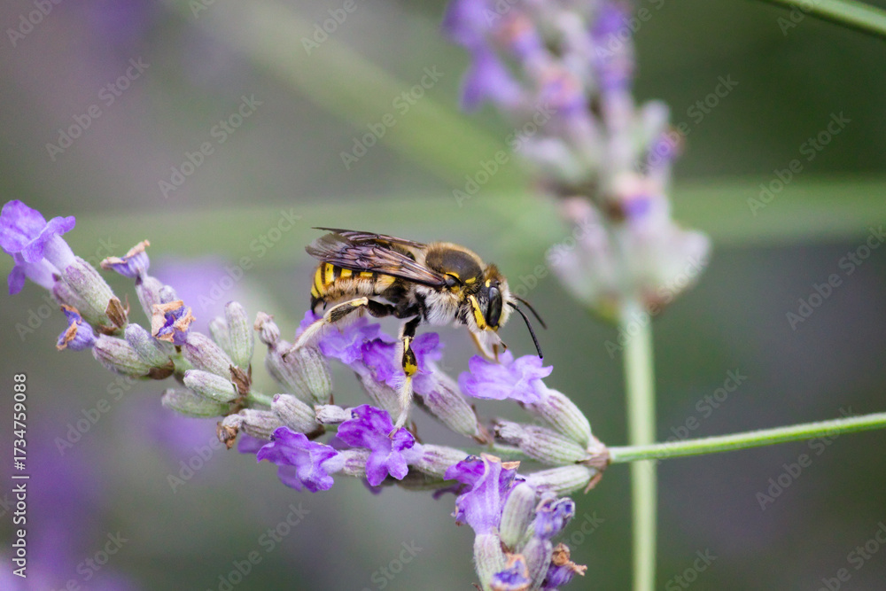 Abeille solitaire (genre Mégachile), aussi appelé abeille coupe feuille, sur une fleur de lavande