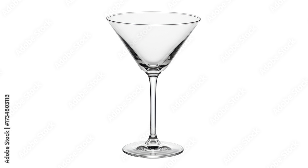 Elegant martini glass isolated on transparent background, clear glassware for cocktails and drinks presentation