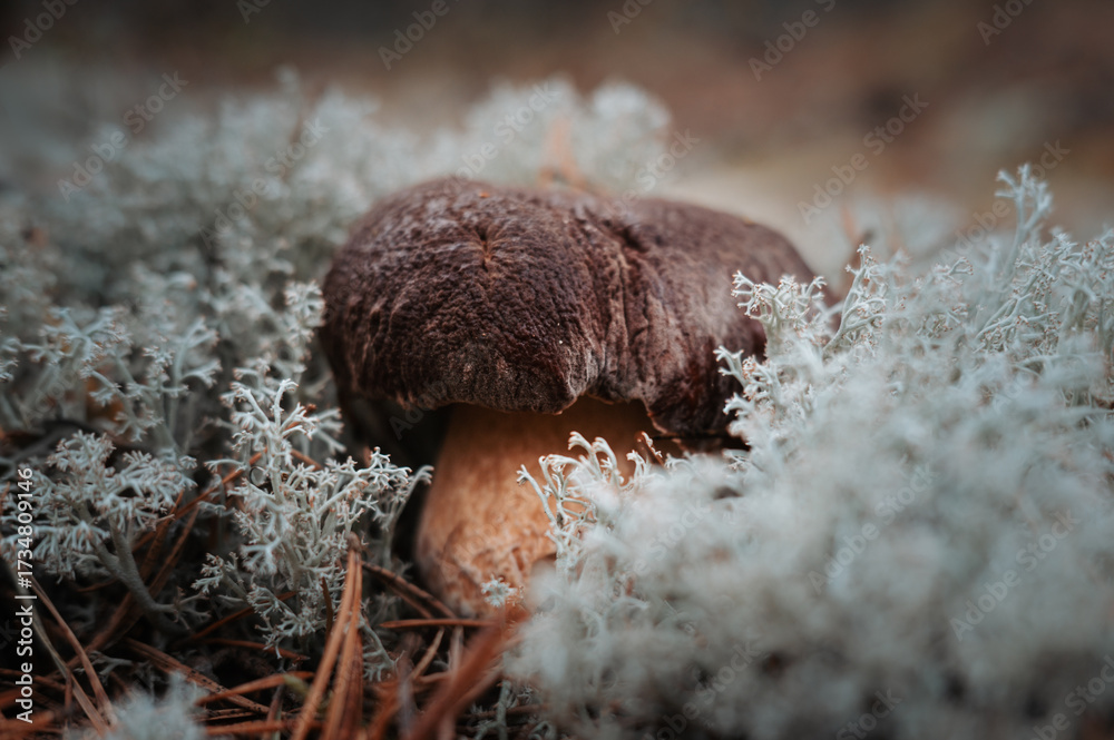Boletus Pinophilus Mushroom Growing Among Lichen