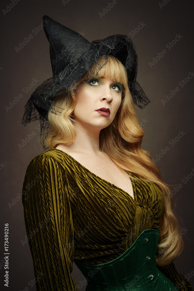 Woman Wearing Witches Hat