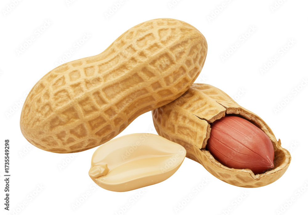 Isolated whole peanut and cracked peanut with visible kernel healthy snack food ingredient natural organic delicious nutritious