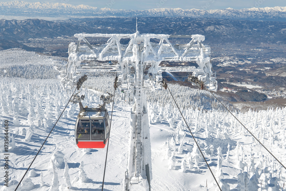 Zao Mountain Ropeway in Japan. Japanese people are traveling to see snow monsters on Mt. Zao.