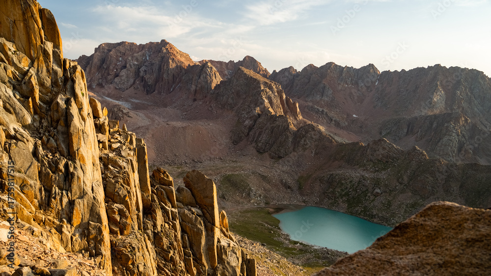a moraine lake in the mountains. a beautiful mountain lake