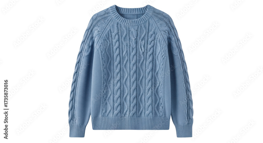 Isolated blue knitted sweater in studio lighting with a cable knit texture style