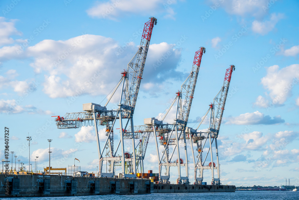 Port cranes, essential for handling containers and goods in the Port of Montreal