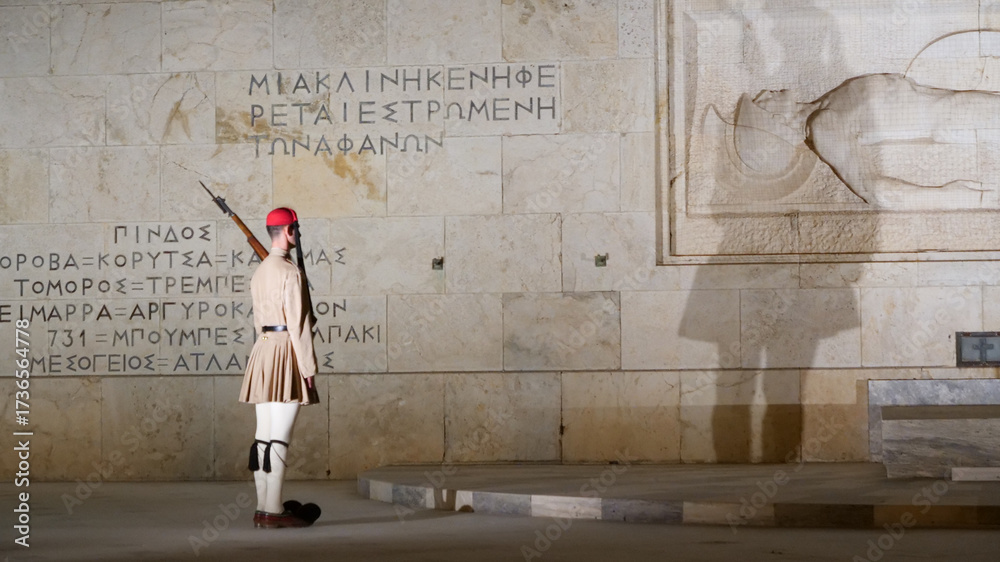 Soldier from behind in his uniform during the changing of the guard in Athens, Greece