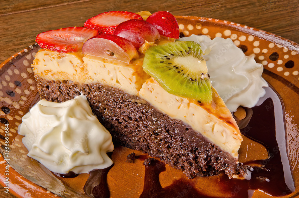 Decadent Chocoflan (Pastel Imposible) Cake with Fresh Fruit Topping