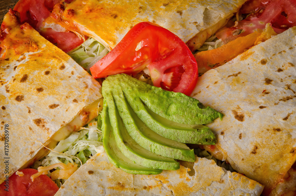 Mexican Cheese Quesadilla Platter with Fresh Avocado and Tomato
