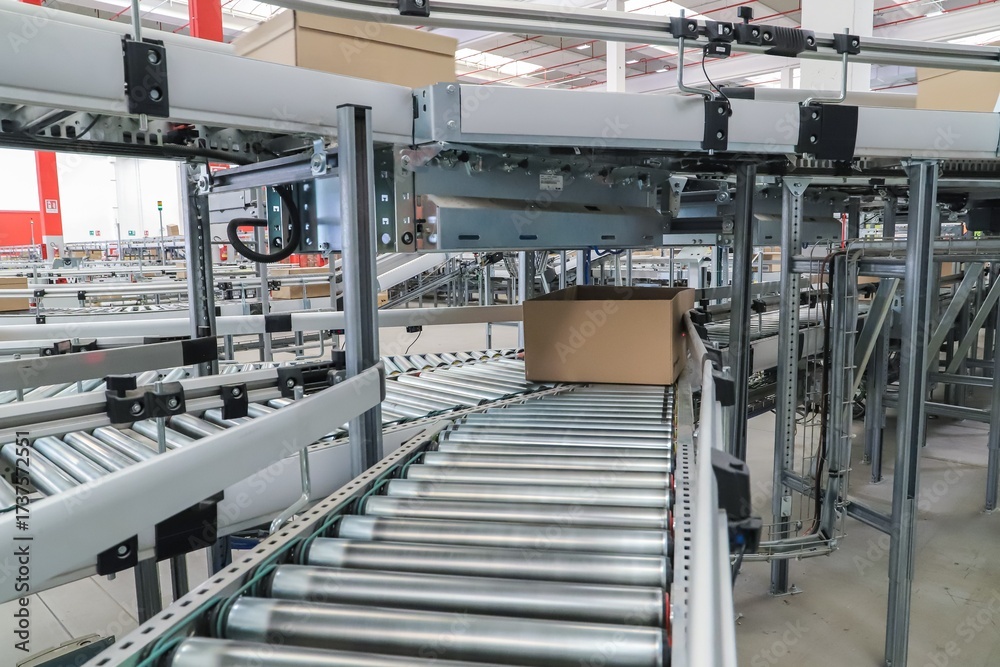 packing line in a logistics warehouse. conveyor belt in a modern production line