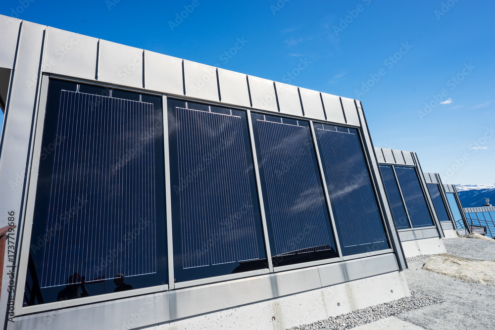 Photovoltaic solar panel in norwegian mountains nature