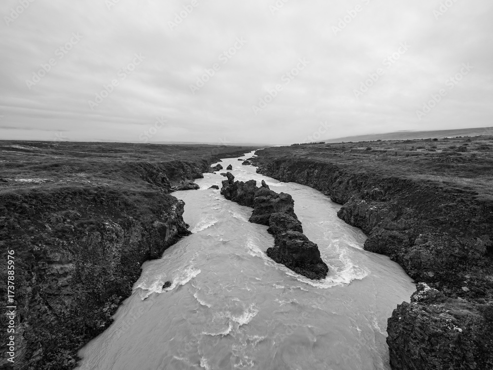 river Skjálfandafljót and rock formations in Iceland
