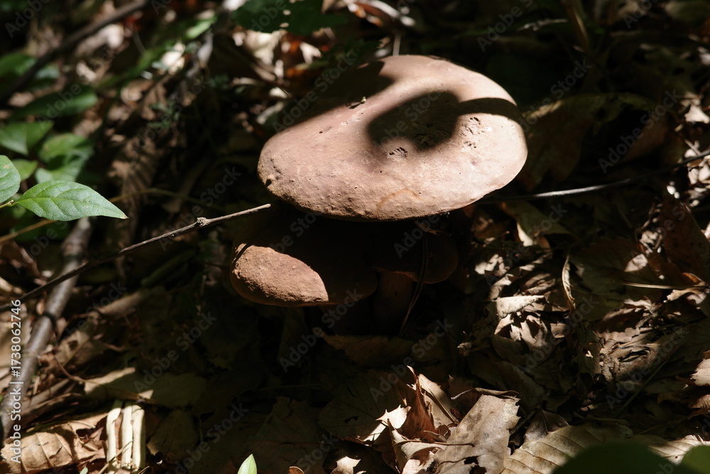 夏の広葉樹林に姿を見せたヤマドリタケ。湿った森の中でふっくらとした傘を広げ、その存在感はまるで森の宝物のようです。