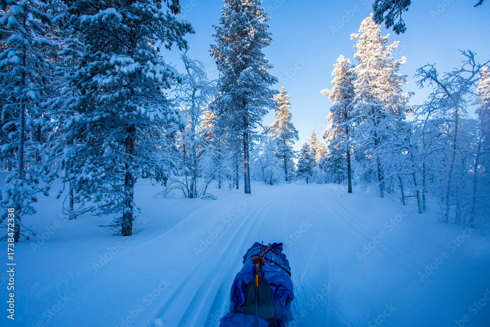 Ski expedition in Pallas Yllastunturi National Park , Lapland, Finland