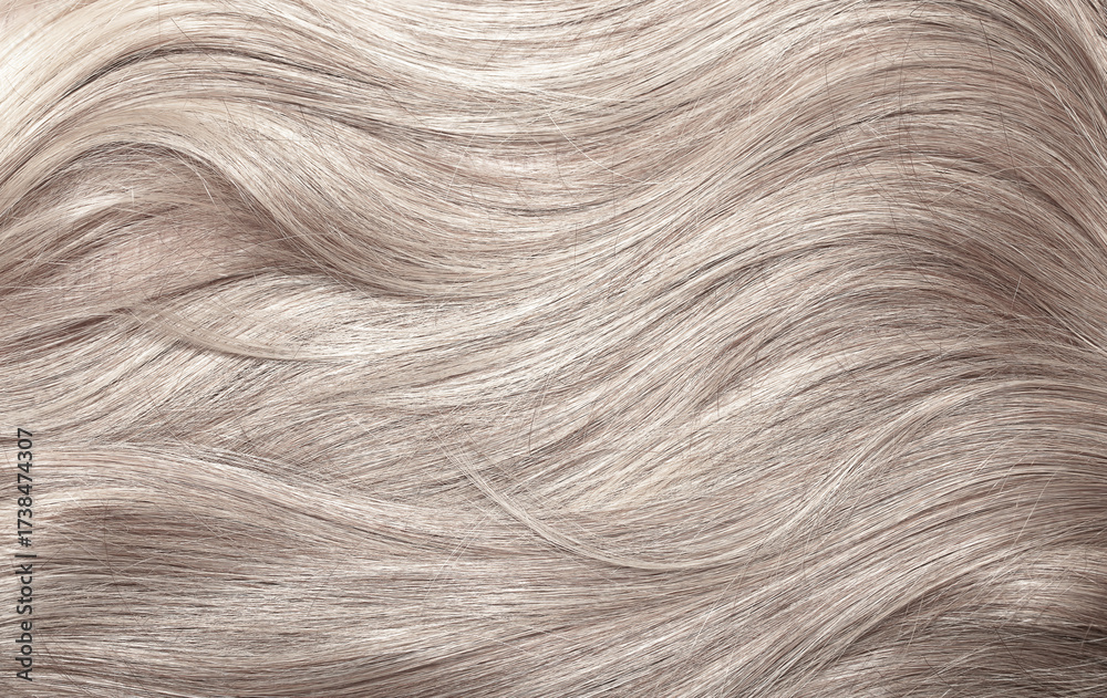 Blond hair close-up as a background. Women's long light brown hair. Beautifully styled wavy shiny curls. Hair coloring. Hairdressing procedures, extension.