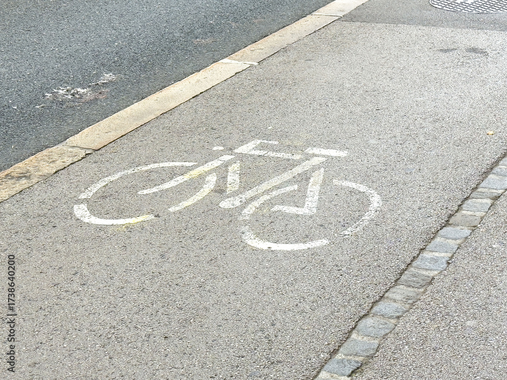 Bicycle lane symbol on urban sidewalk: promoting safe cycling pathways
