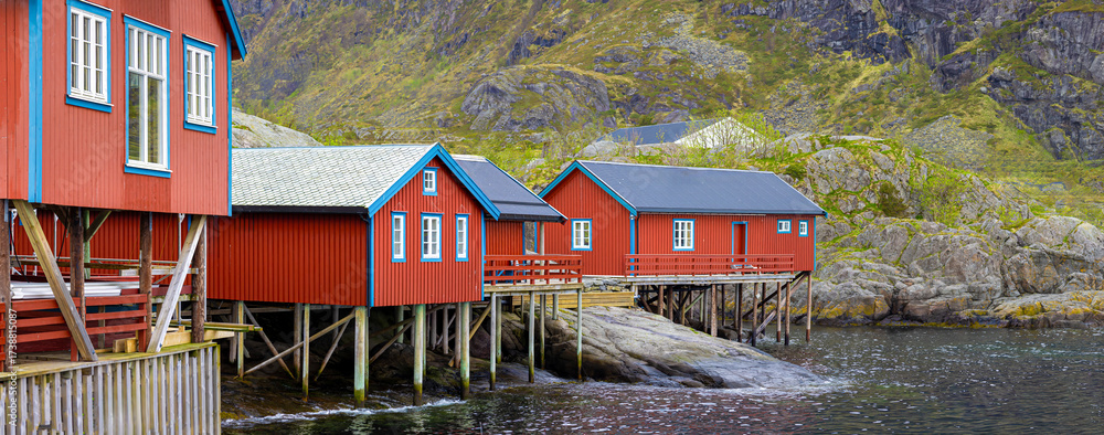 Scenic fishing village A in Lofoten Islands with authentic fishermen sheds and museum