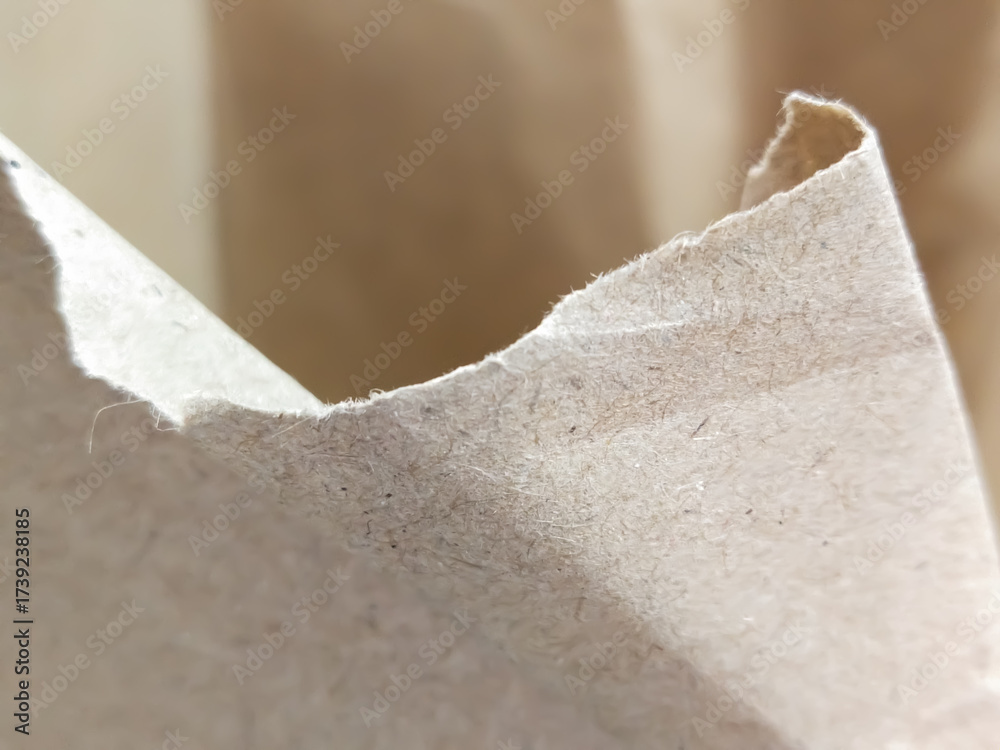 A torn piece of rough brown paper reveals its fibrous texture and jagged edge under soft lighting.