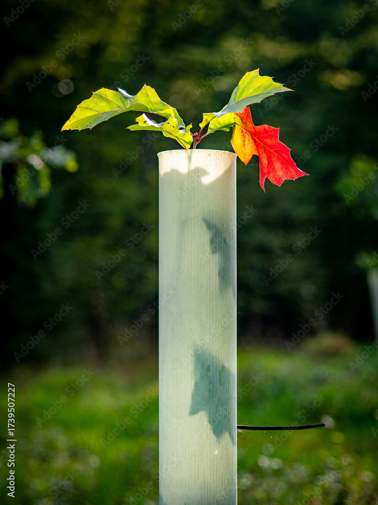 Wiederaufforstung im herbstlichen Mischwald