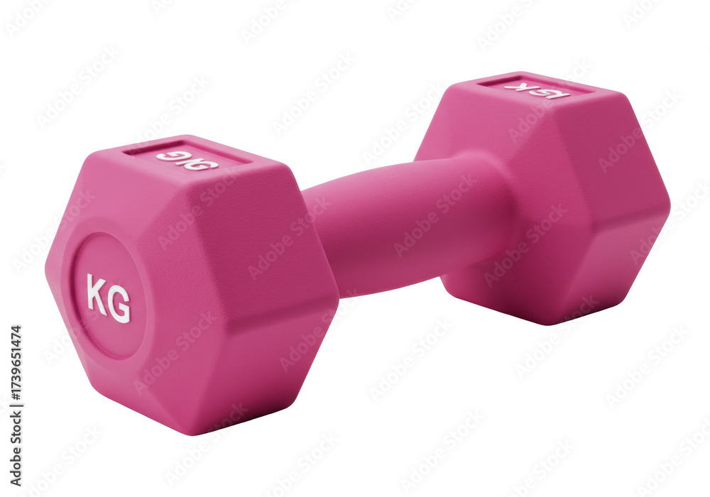 Pink dumbbell isolated on transparent background, fitness equipment for strength training and exercise in PNG format