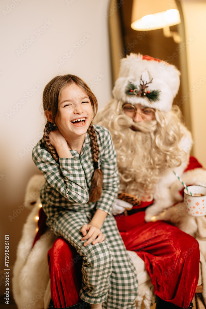 30.01.25 Vinnitsa, Ukraine: Santa Claus came on a festive evening to wish two sisters a Merry Christmas
