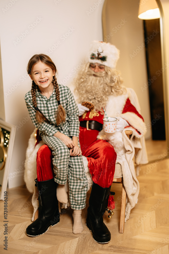 30.01.25 Vinnitsa, Ukraine: Girl Sitting on Santa's Lap in Festive Setting