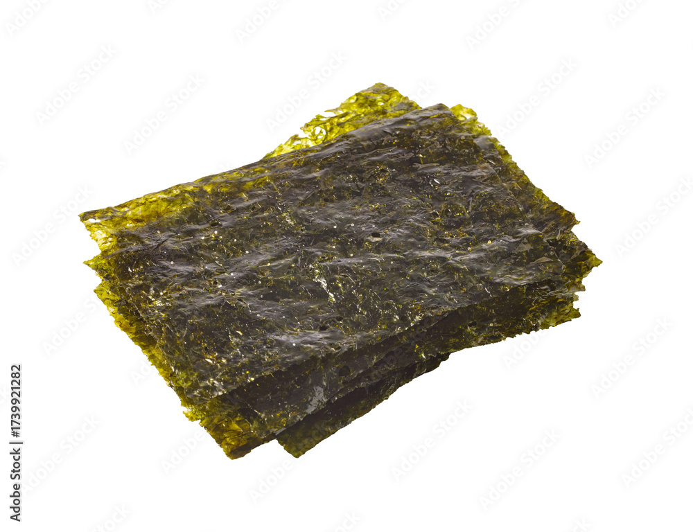 Dried nori seaweed sheets for sushi recipe on transparent background