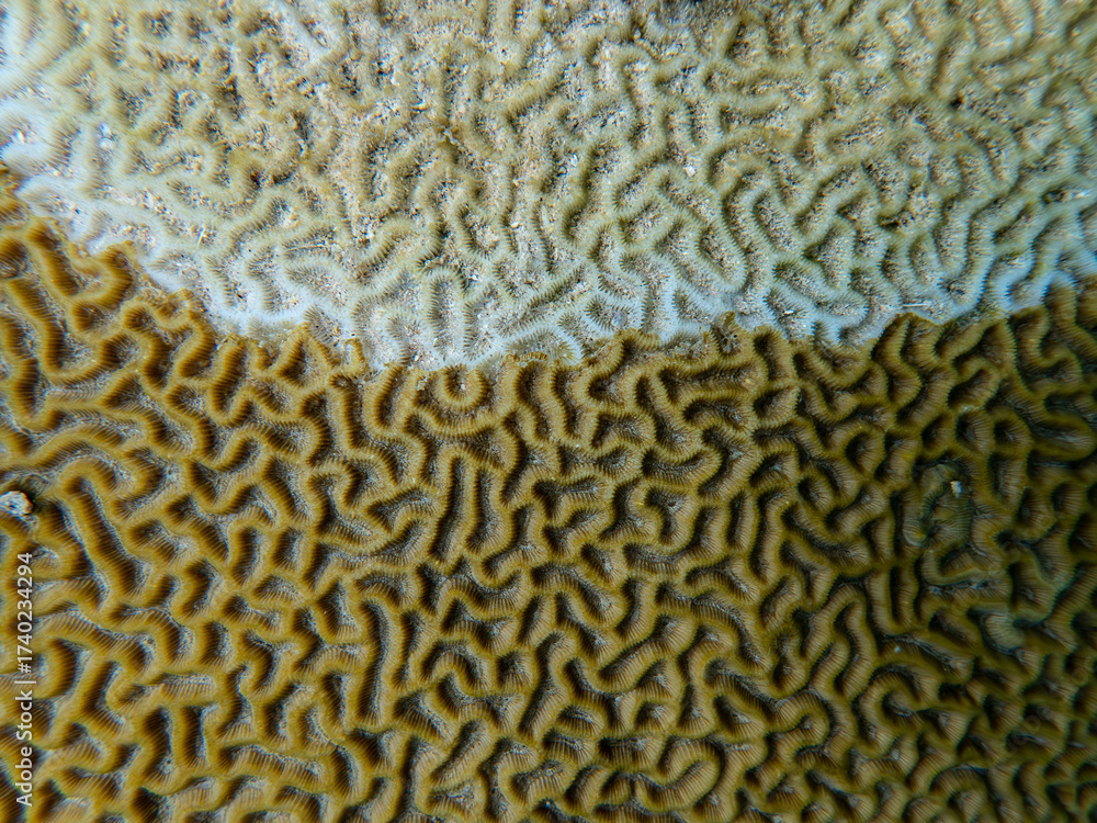 Symmetrical Brain Coral Pseudodiploria strigosa with Stony Coral Tissue Loss Disease on Vieques, Puerto Rico.