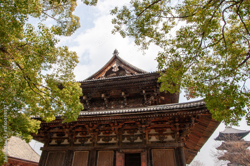 Traditional Japanese Temple Surrounded by Lush Greenery