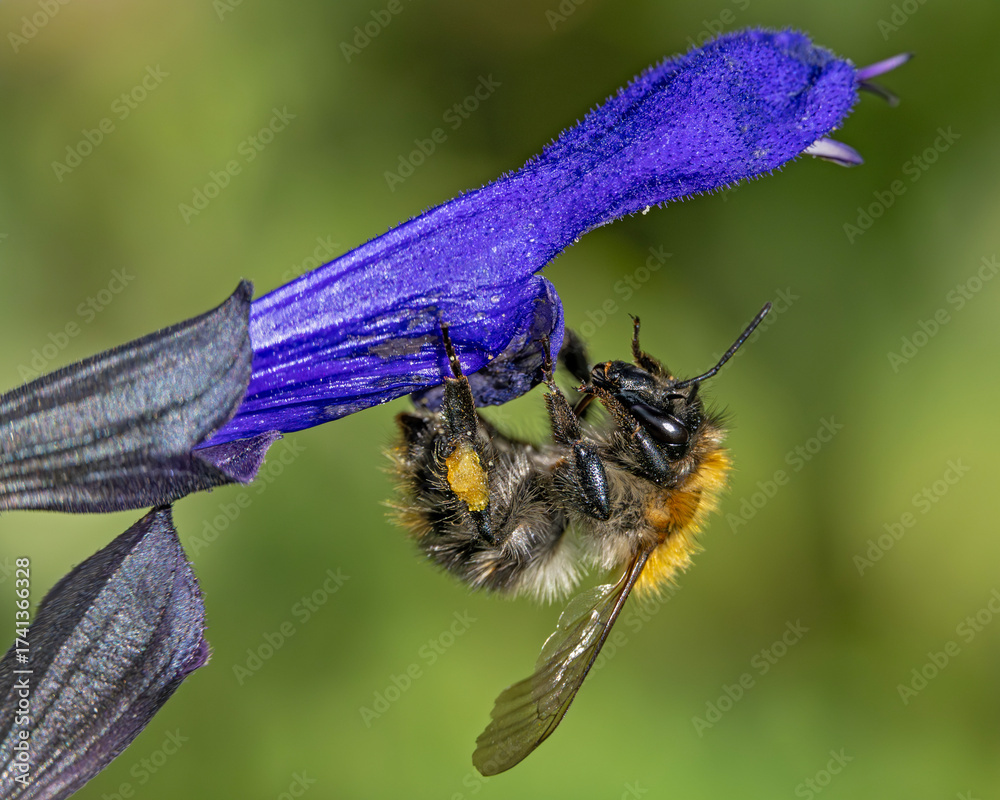 Makroaufnahme: Hummel sammelt Nektar am Salbei