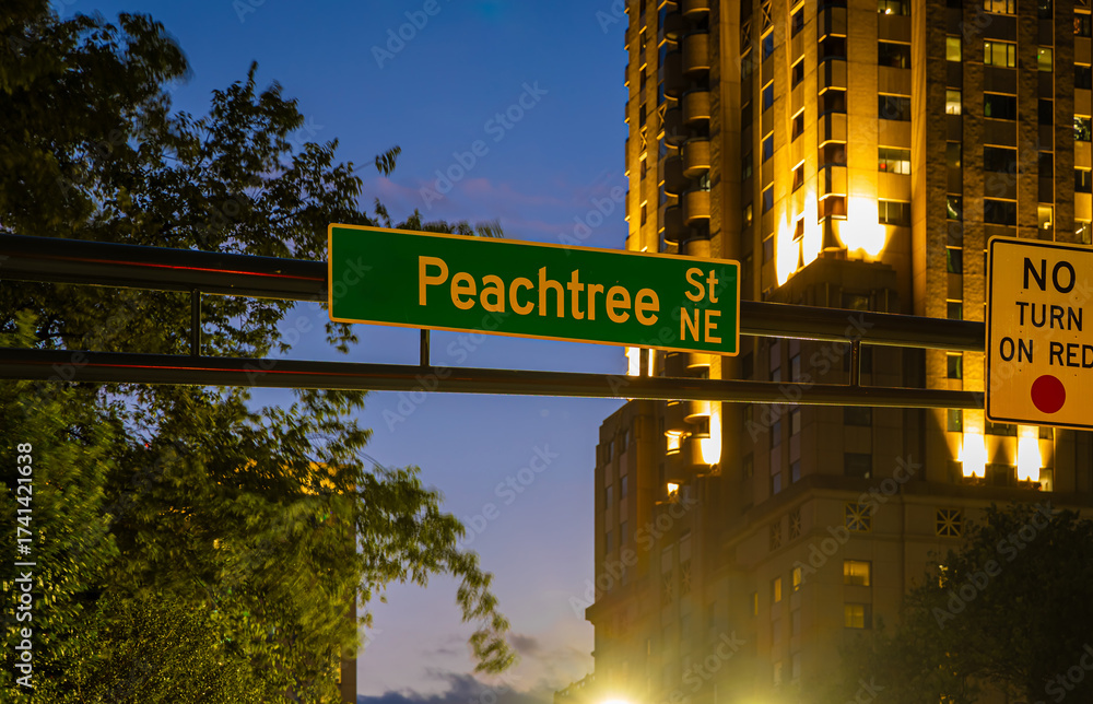 Close-up of Peachtree Street sign in Atlanta