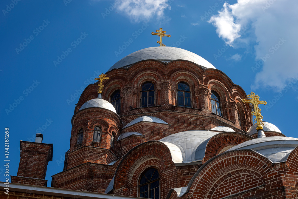 Beautiful domes of ancient churches in Kazan. Sunny summer day. Beautiful church architecture.