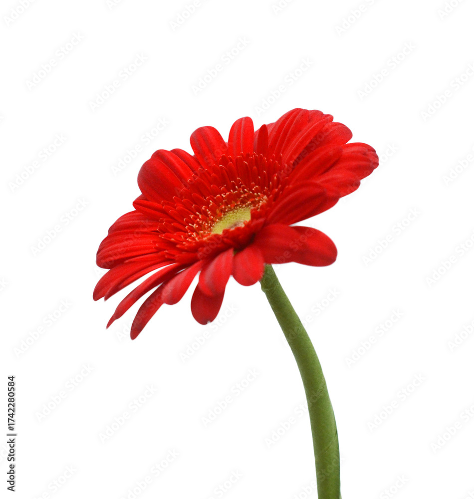 Bright scarlet gerbera flower in close-up.