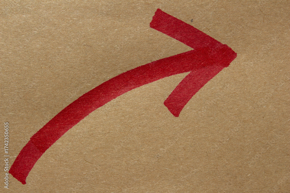 Red hand drawn arrow on brown kraft paper