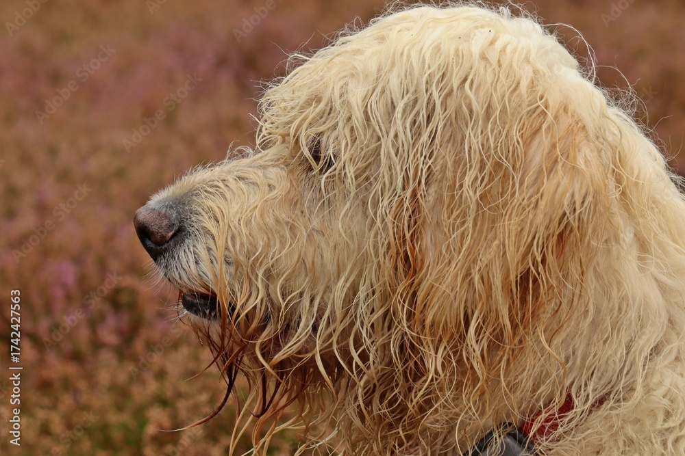 Goldendoodle im Büsenbachtal in der Lüneburger Heide