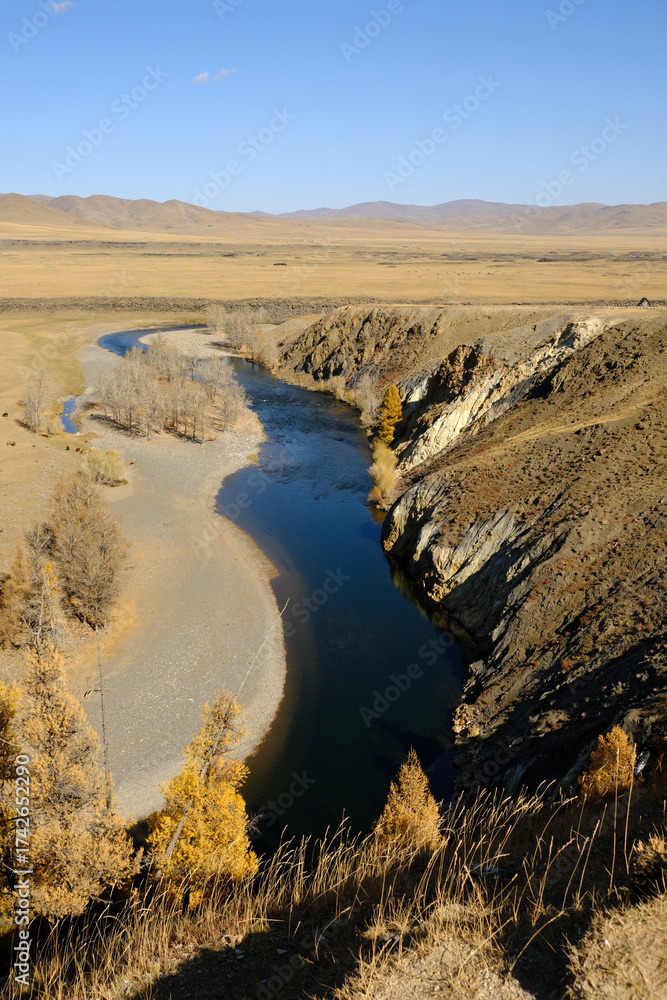 Orkhon Valley and Tsutgalan River in Autumn, Mongolia