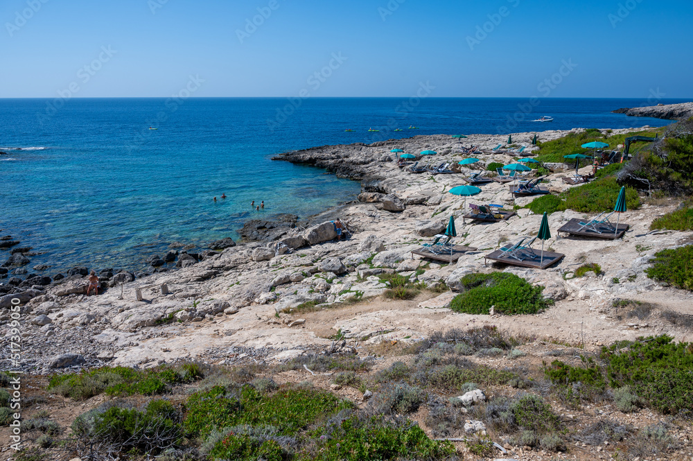 Close-up of an acorn on an oak tree branch. Selective focus highlights the nut against a blurred background of sunlit green foliage, symbolizing the beginning of the autumn season.