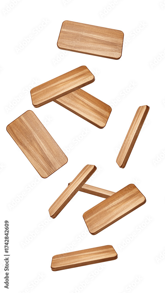 Falling wooden Cutting Board, isolated on white background, full depth of field
