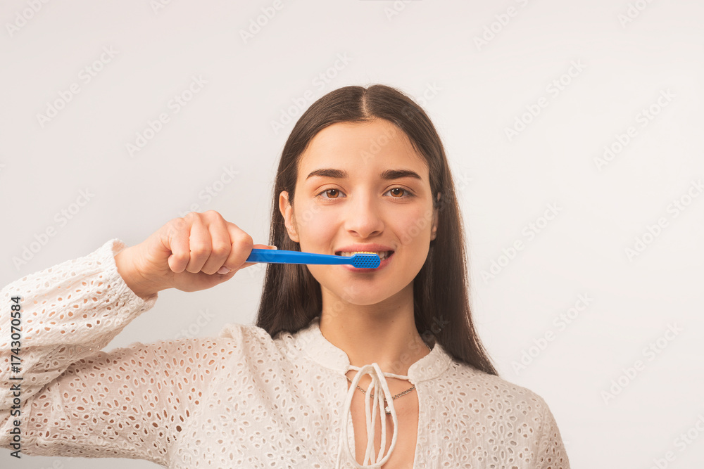 Dental issues prevention. Dental hygiene. Dental equipment. Dental clinic. Stomatology. Straight white teeth. Brushing teeth. Toothbrush.