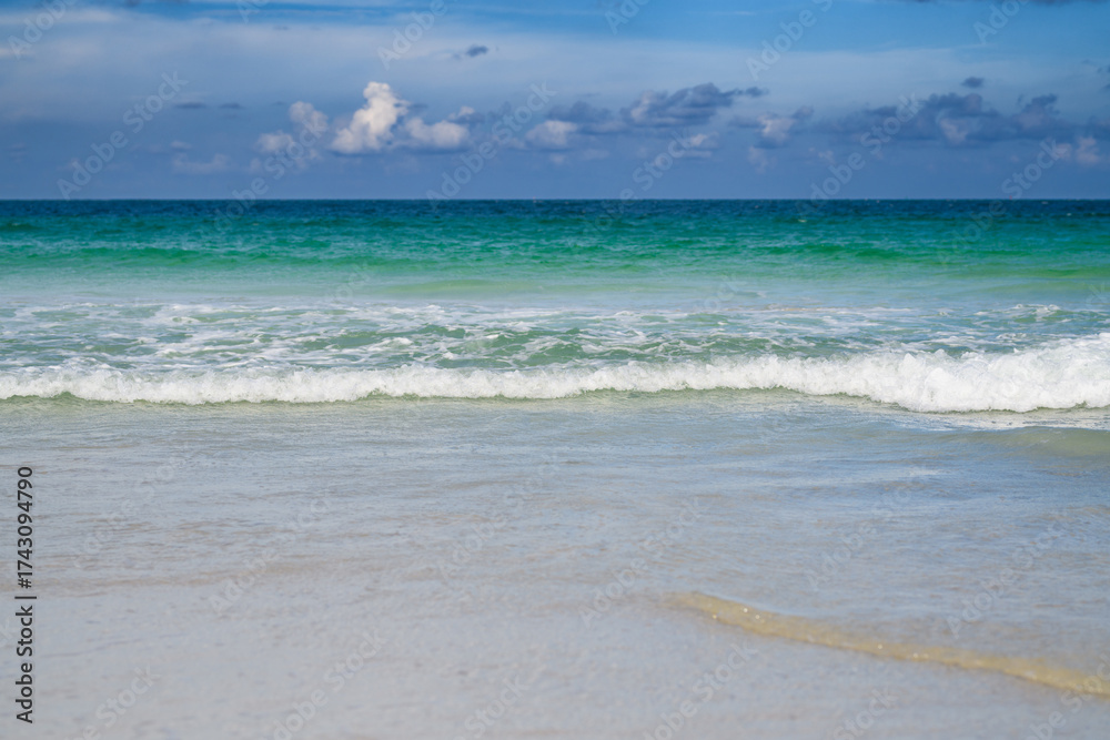 Waves at beach. Waves splash background. Ocean Waves. Sea view for nature background. Sky and clouds background. Sea waves for background or backdrop.