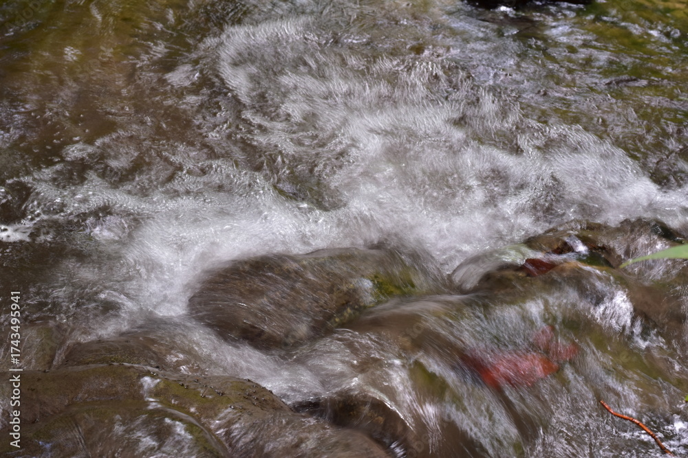 A waterfall with a lot of water splashing out of it, Downflowing water on a weir
