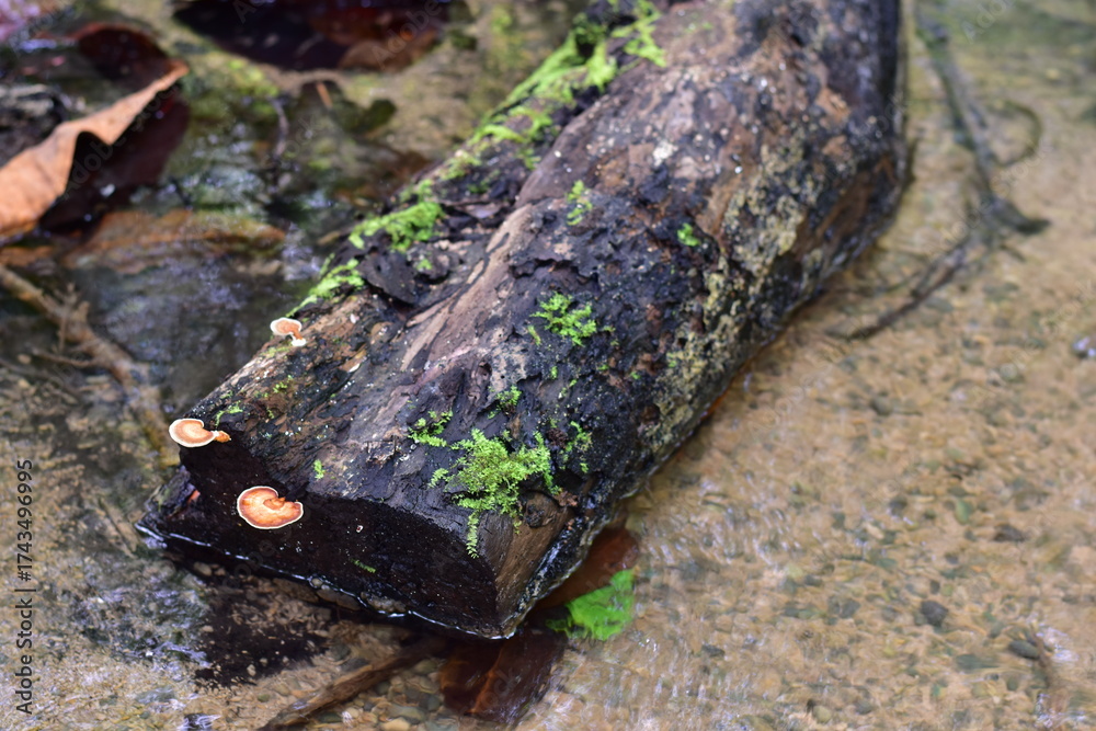 Tranquil Waterfall with Rooted Trees Surrounded by Lush Greenery and Crystal Clear Waterfall in Serene Nature Setting, stream in forest