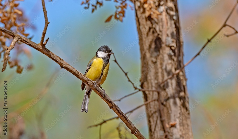 The Great Tit (Parus major) is a widespread species in Asia and Europe. They are found in parks, gardens and woodlands.