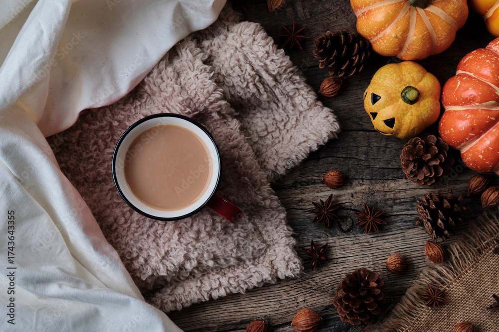 Chai Tea Latte and Halloween Decorations
