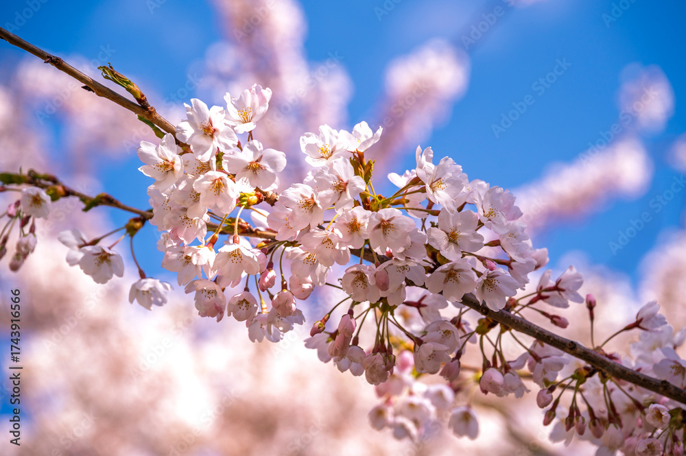 Japanese cherry Blossom (Sakura tree) spring season or hanabi season in japan, outdoor pastel color background