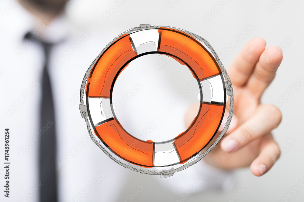 Hand reaching for a life preserver. Concept of support, rescue, safety, and business solutions.