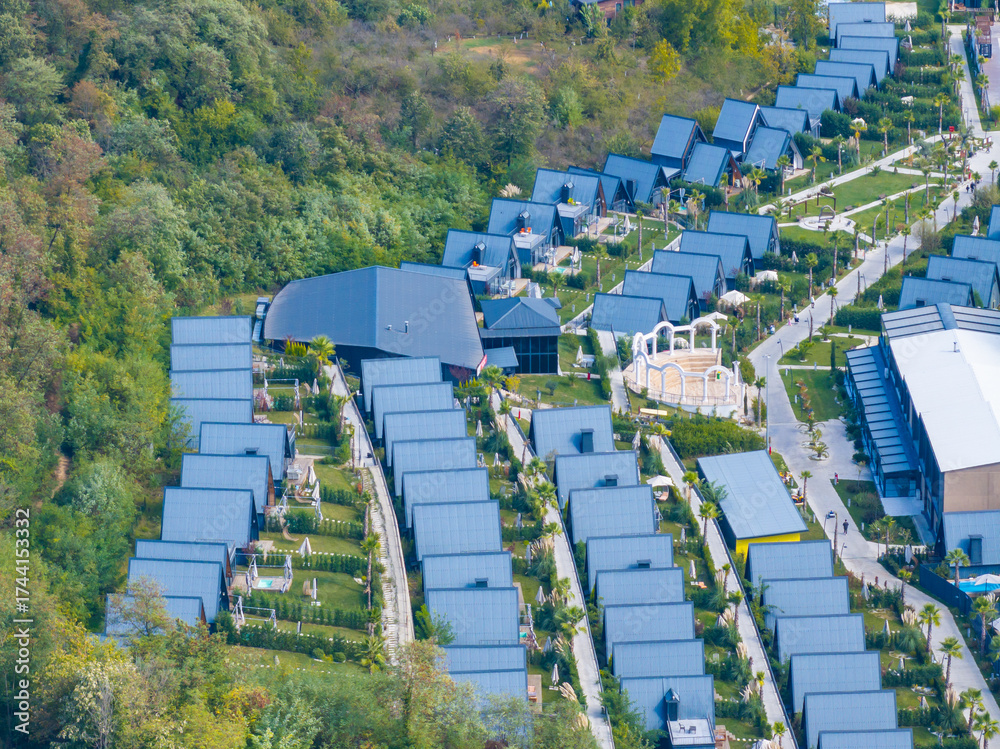 Symmetricall Bungalow Houses Drone Photo, Lake Sapanca Sakarya, Turkiye (Turkey)
