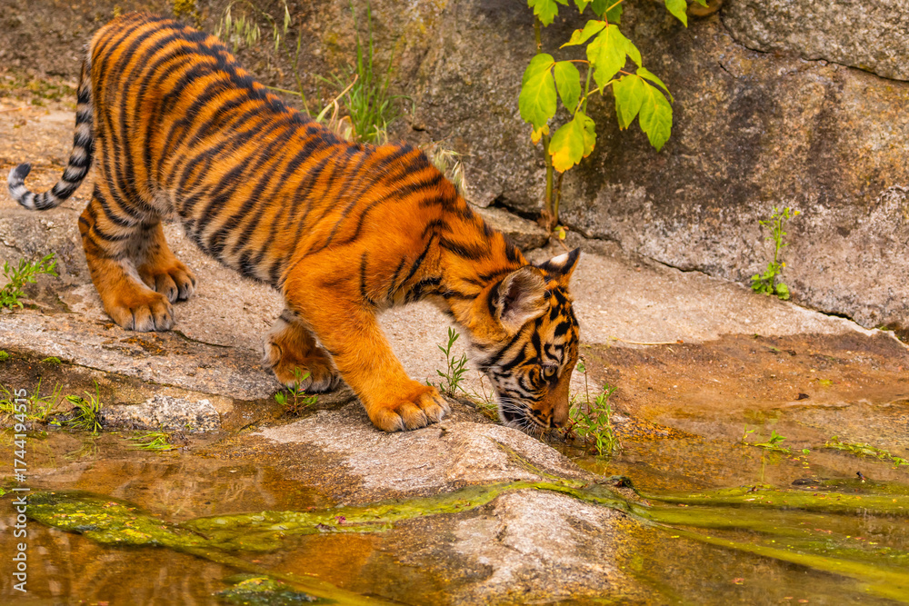 Sumatran tiger family with two little cubs